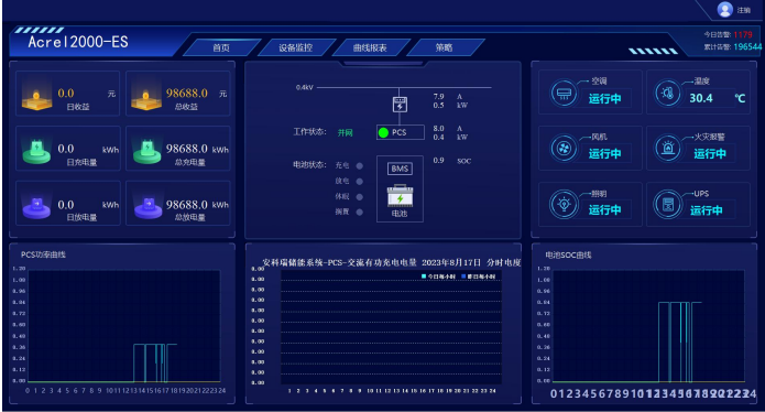安科瑞Acrel-2000ES儲能能量管理系統(tǒng)具有完善的儲能監(jiān)控與管理功能,涵蓋了儲能系統(tǒng)設(shè)備(PCS、BMS、電表、消防、空調(diào)等)的詳細(xì)信息,實(shí)現(xiàn)了數(shù)據(jù)采集、數(shù)據(jù)處理、數(shù)據(jù)存儲、數(shù)據(jù)查詢與分析、可視化監(jiān)控、報(bào)警管理、統(tǒng)計(jì)報(bào)表等功能。在高級應(yīng)用上支持能量調(diào)度,具備計(jì)劃曲線、削峰填谷、需量控制、備用電源等控制功能。系統(tǒng)對電池組性能進(jìn)行實(shí)時監(jiān)測及歷史數(shù)據(jù)分析、根據(jù)分析結(jié)果采用智能化的分配策略對電池組進(jìn)行充放電控制,優(yōu)化了電池性能,提高電池壽命。