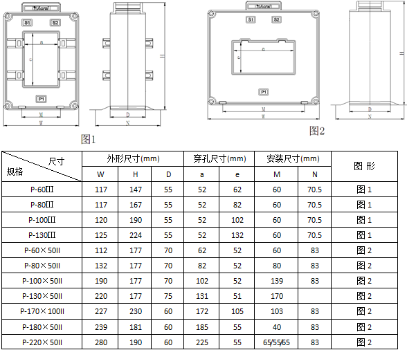 | P-50II | 250-600/5(1) | 2.5 | ||