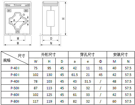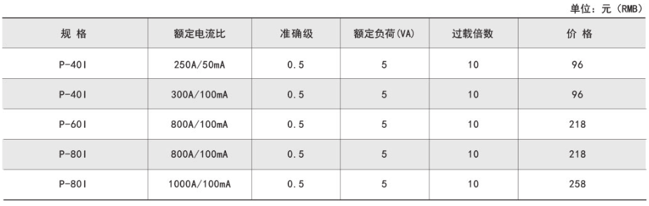 | 規(guī) 格 | 額定電流比(A) | 準(zhǔn)確級 | 額定負荷(VA) | 安裝方式 |