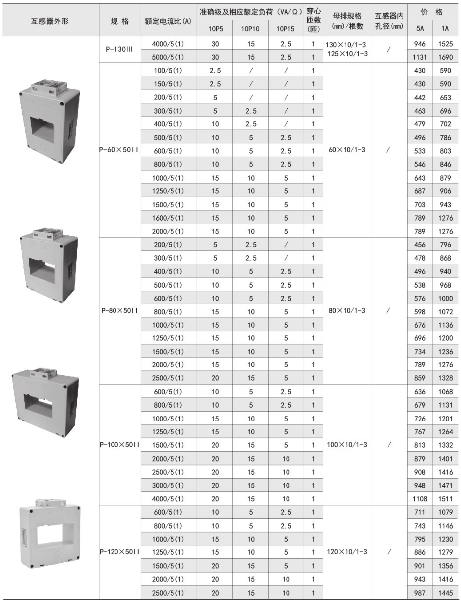 | P-40II | 250-400/5(1) | 10P10 | 2.5 | |