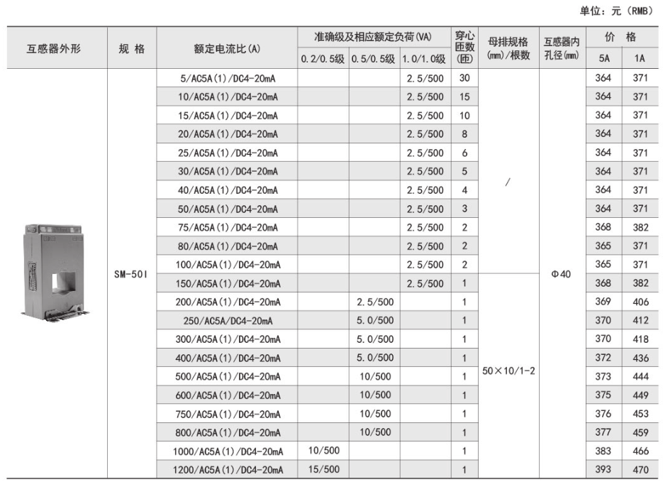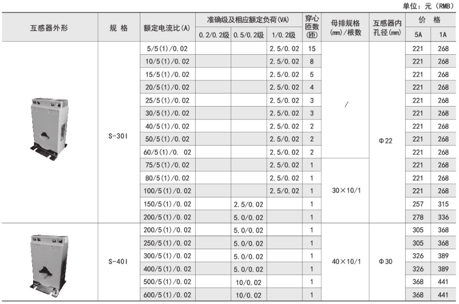 | S-40I | 200/5(1)/0.02 | ? | 5.0/0.02 | ? | 1 | 40×10/1 | φ30 | C,F |