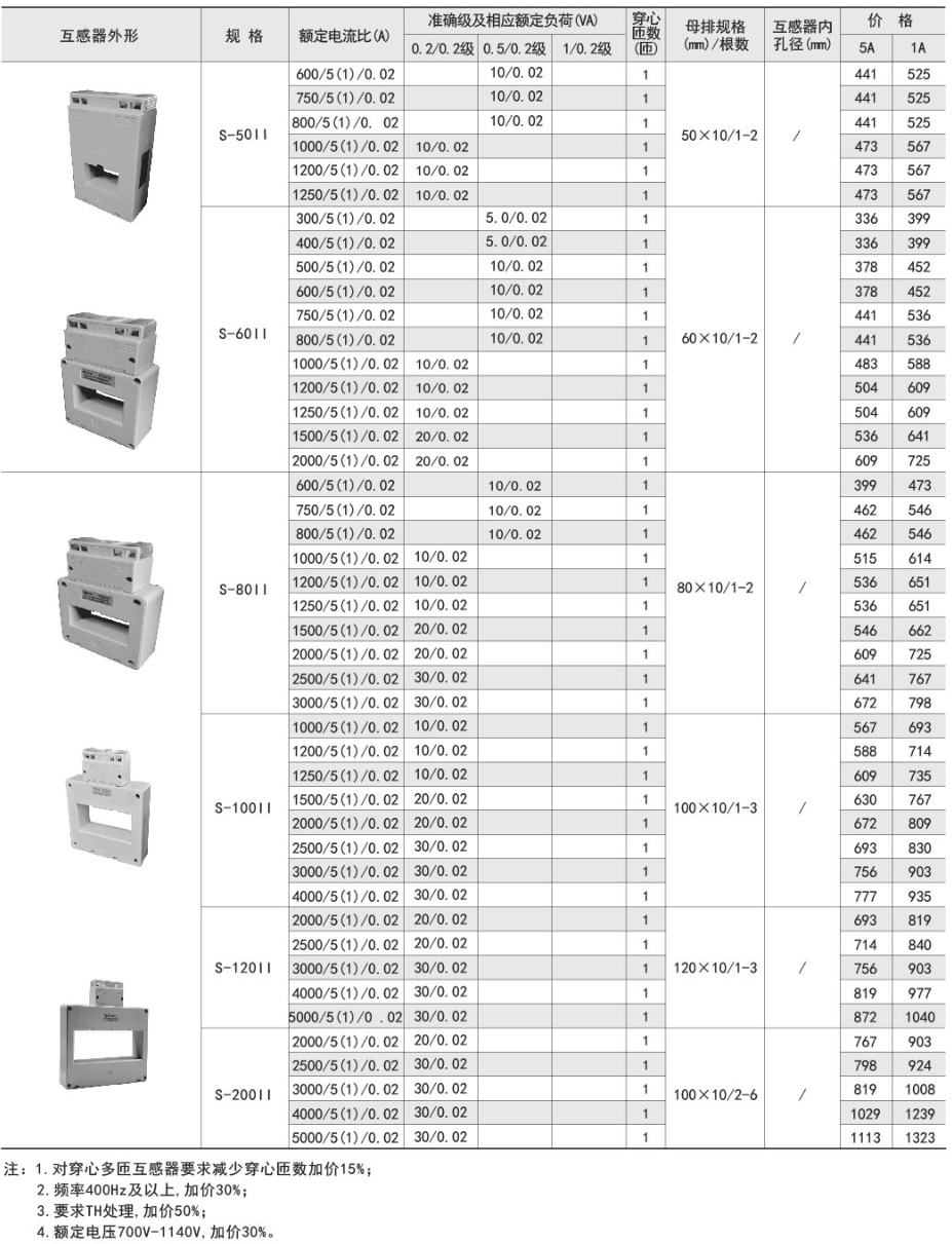 | S-100Ⅱ | 1000-1250/5(1)/0.02 | 10/0.02 | ? | ? | 1 | 100×10/1-3 | / | D |