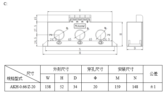 AKH-0.66 Z型系列三相導軌式電流互感器產(chǎn)品外形美觀,接線方便。外殼材料可選用曾強尼龍、PPT、透明聚碳酸酯、阻燃PC/ABS合金,作為交流電流信號采集元件,一般與AMC16、PZ-3O0配套使用,可減小電流互感器安裝空間和接線的煩瑣,為用戶降低成本。