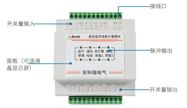 AMC16-DETT 基站直流電能計量模塊主要是針對有共享需求,且開關(guān)電源無分用戶電量計量功能的基站而設(shè)計的。儀表可對六個回路的直流電能進行計量,并可為配套的霍爾傳感器提供工作電流,同時可通過上位機軟件實現(xiàn)零漂校準,具有遙測、遙 信、遙調(diào)、實時電量計量、供電質(zhì)量異常告警、信息存儲及處理、信息交互等功能。該模塊可分別計量三家運營商的直流用電量,為基站節(jié)能改善提供詳細的數(shù)據(jù)依據(jù),為直流配電設(shè)備提供分項計量解決方案。