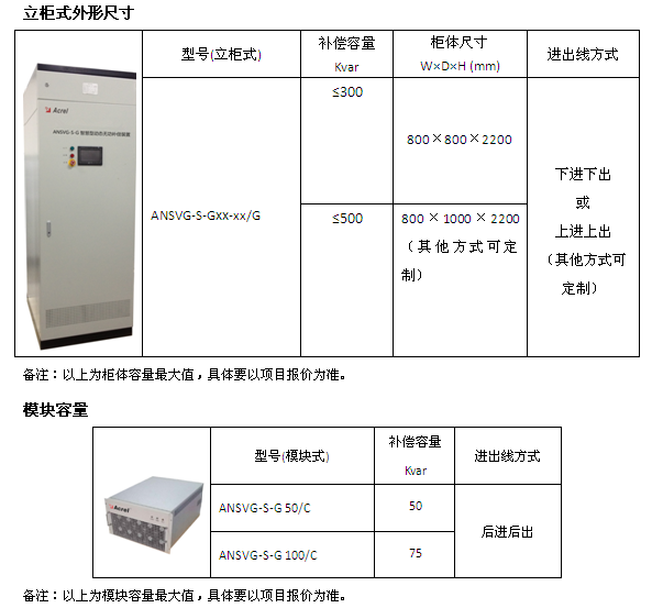 安科瑞產(chǎn)品智慧型動(dòng)態(tài)無(wú)功補(bǔ)償裝置主動(dòng)根據(jù)系統(tǒng)的線性動(dòng)態(tài)需求,自動(dòng)調(diào)節(jié)有源及無(wú)源模塊的輸出配比,ANSVG-S-G整機(jī)主要是由ANSVG-S-G模塊、無(wú)源補(bǔ)償電容器(TSC)、液晶顯示器組成。