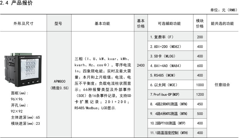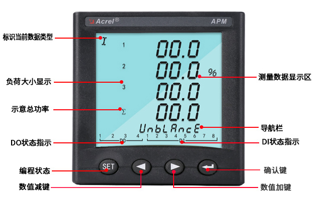 APM系列網絡電力儀表按IEC標準設計,具有全電量測量,電能統(tǒng)計,電能質量分析及網絡通訊等功能,主要用于對電網供電質量的綜合監(jiān)控診斷及電能管理。該系列儀表采用了模塊化設計,當客戶需要增加開關量輸入輸出,模擬量輸入輸出,SD卡記錄,以太網通訊時,只需在背部插入對應模塊即可。