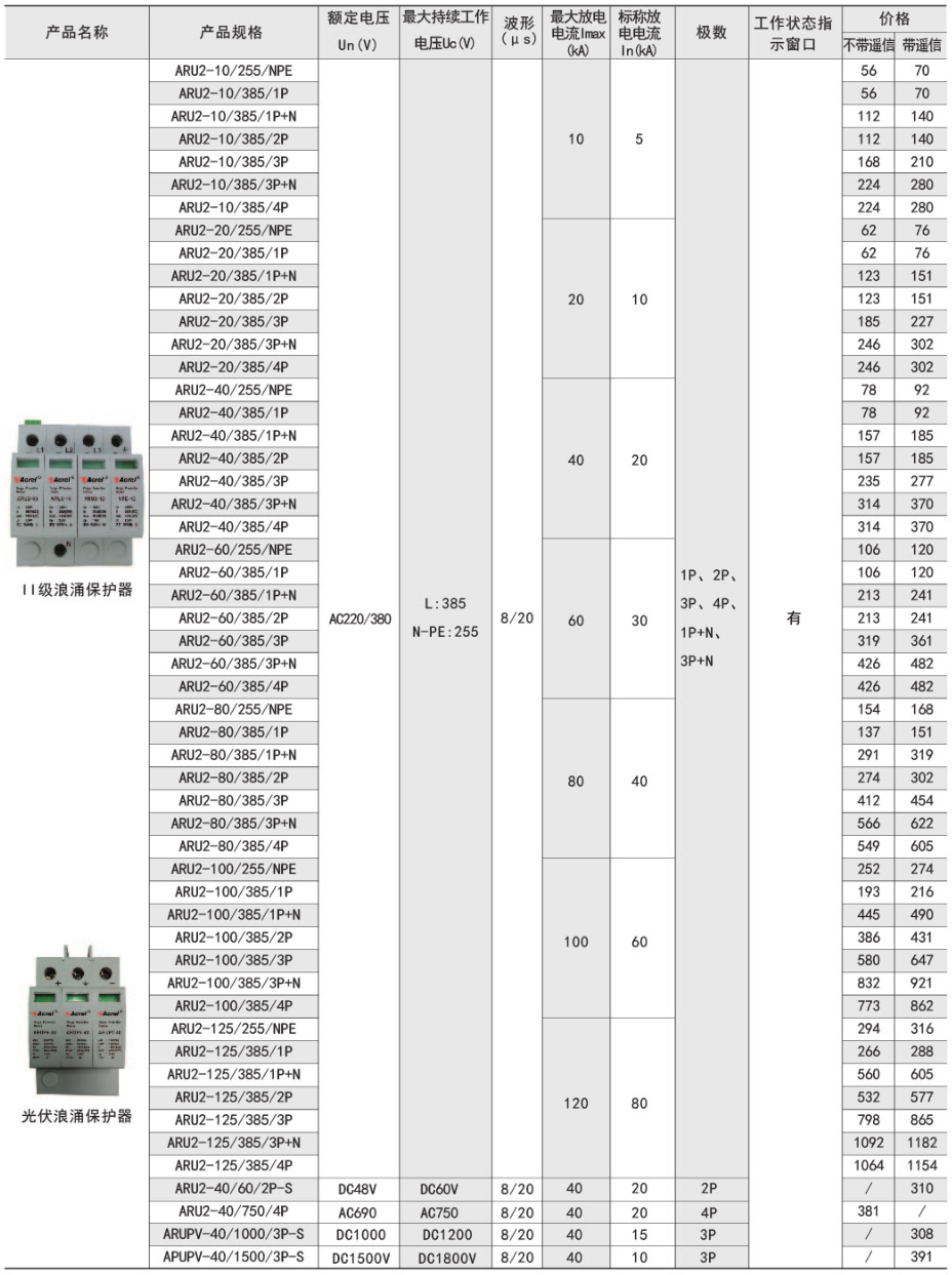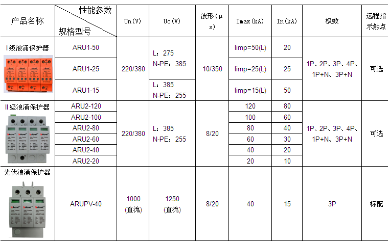 安科瑞ARU系列浪涌保護(hù)器是一種為各種電子設(shè)備、儀器儀表、通訊線路、低壓電氣線路提供安全防護(hù)的電子裝置。適用于交流50/60Hz,額定電壓380V的供電系統(tǒng)或光伏系統(tǒng),對(duì)間接雷電和直接雷電影響或其他瞬時(shí)過(guò)電壓的電涌進(jìn)行保護(hù)。