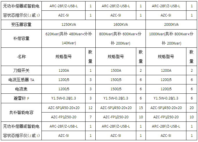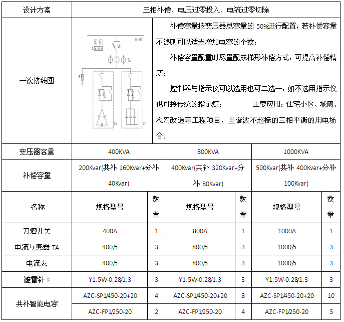 1、變壓器容量為400/800/1000/1250/1600/2000KVA的三相補償應(yīng)用方案。