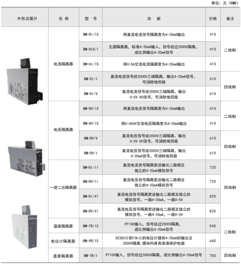 BM系列模擬信號隔離器可以對電流、電壓等電量參數(shù)或溫度、電阻等非電量參數(shù)進(jìn)行高速精確測量,經(jīng)隔離轉(zhuǎn)換成標(biāo)準(zhǔn)的模擬信號輸出。既可直接與指針表、數(shù)顯表相接,也可以與自控儀表(如PLC)、各種A/D轉(zhuǎn)換器以及計(jì)算機(jī)系統(tǒng)配接。