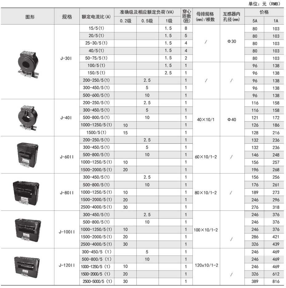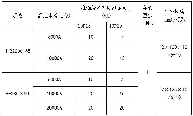 | 規(guī)格 | 額定電流比(A) | 準確級 | 穿心匝數(shù) | 母排規(guī)格/根數(shù) | |