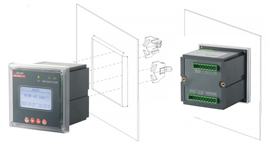 2、把儀表插入配電盤儀表孔中,插入儀表后,用卡扣固定安裝。