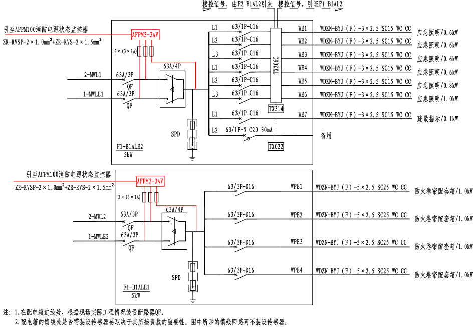 樓層應(yīng)急照明、防火卷簾電源監(jiān)控系統(tǒng)圖