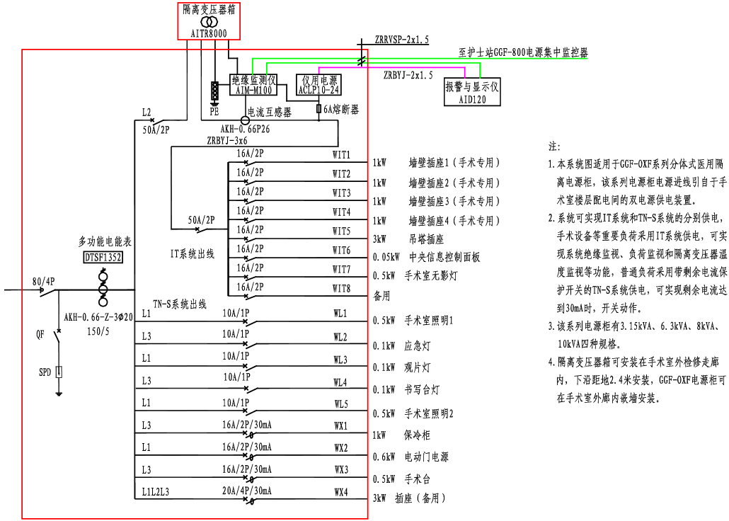 GGF-OXF醫(yī)用隔離電源柜系統(tǒng)接線圖