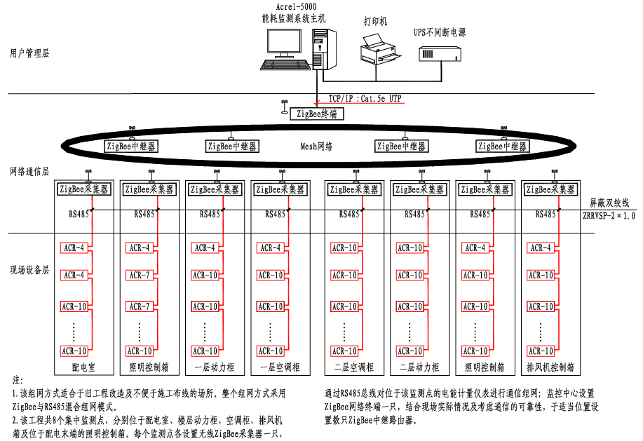 ZigBee無(wú)線(xiàn)網(wǎng)絡(luò)能耗監(jiān)測(cè)系統(tǒng)組網(wǎng)示意圖