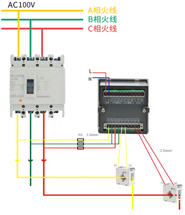 2、把儀表插入配電盤儀表孔中,插入儀表后,用卡扣固定安裝。