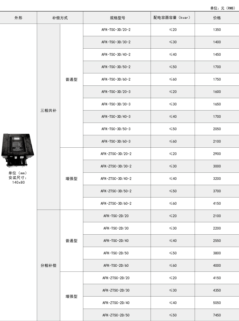具體型號:AFK-TSC-3D/50-2,三相共補,普通型